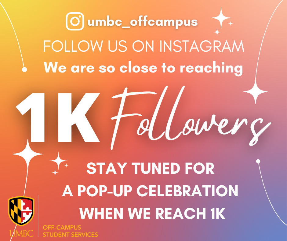 Follow us on Instagram and help us reach 1000 followers! @umbc_offcampus