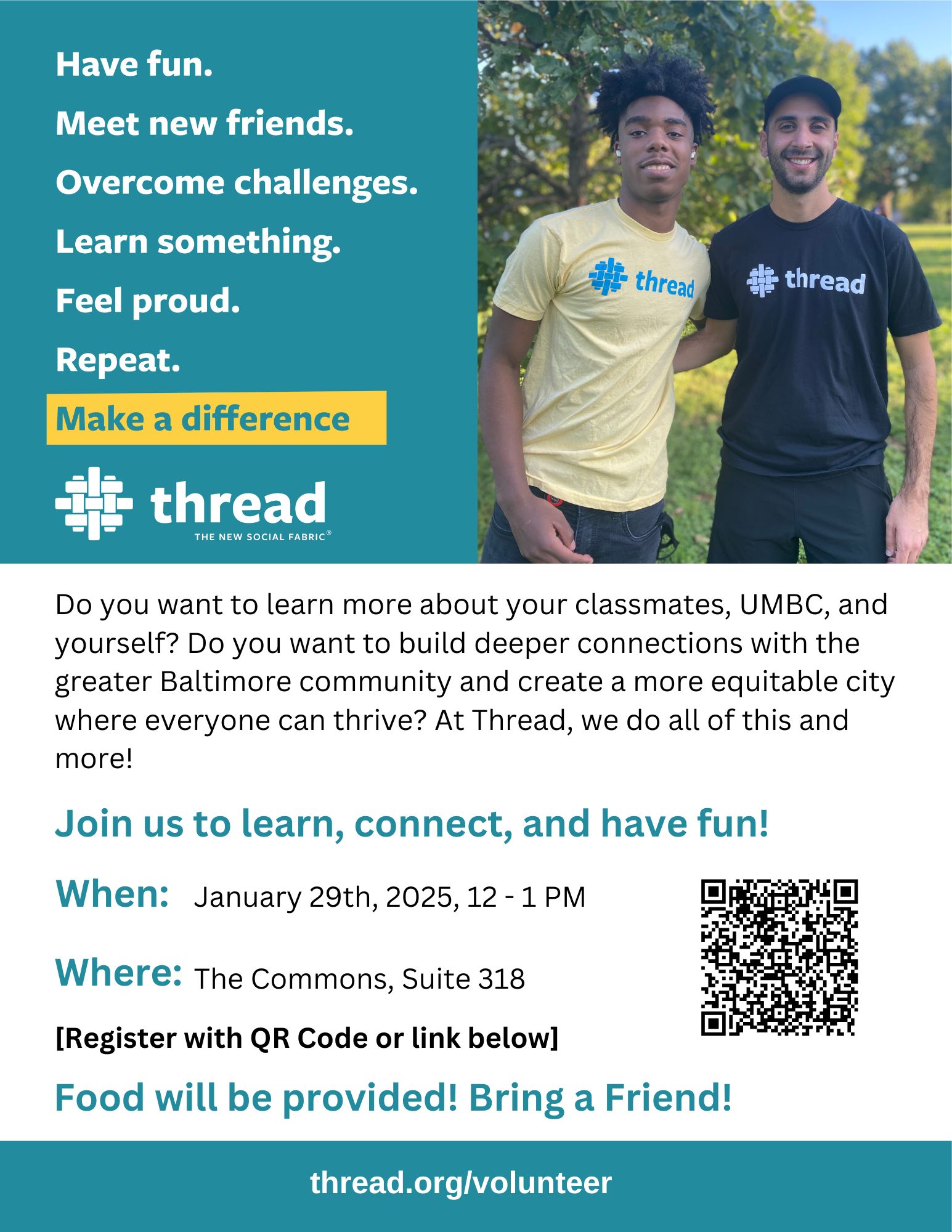 Come enjoy free food and learn more about volunteering at Thread. Bring a friend with you! Register here!