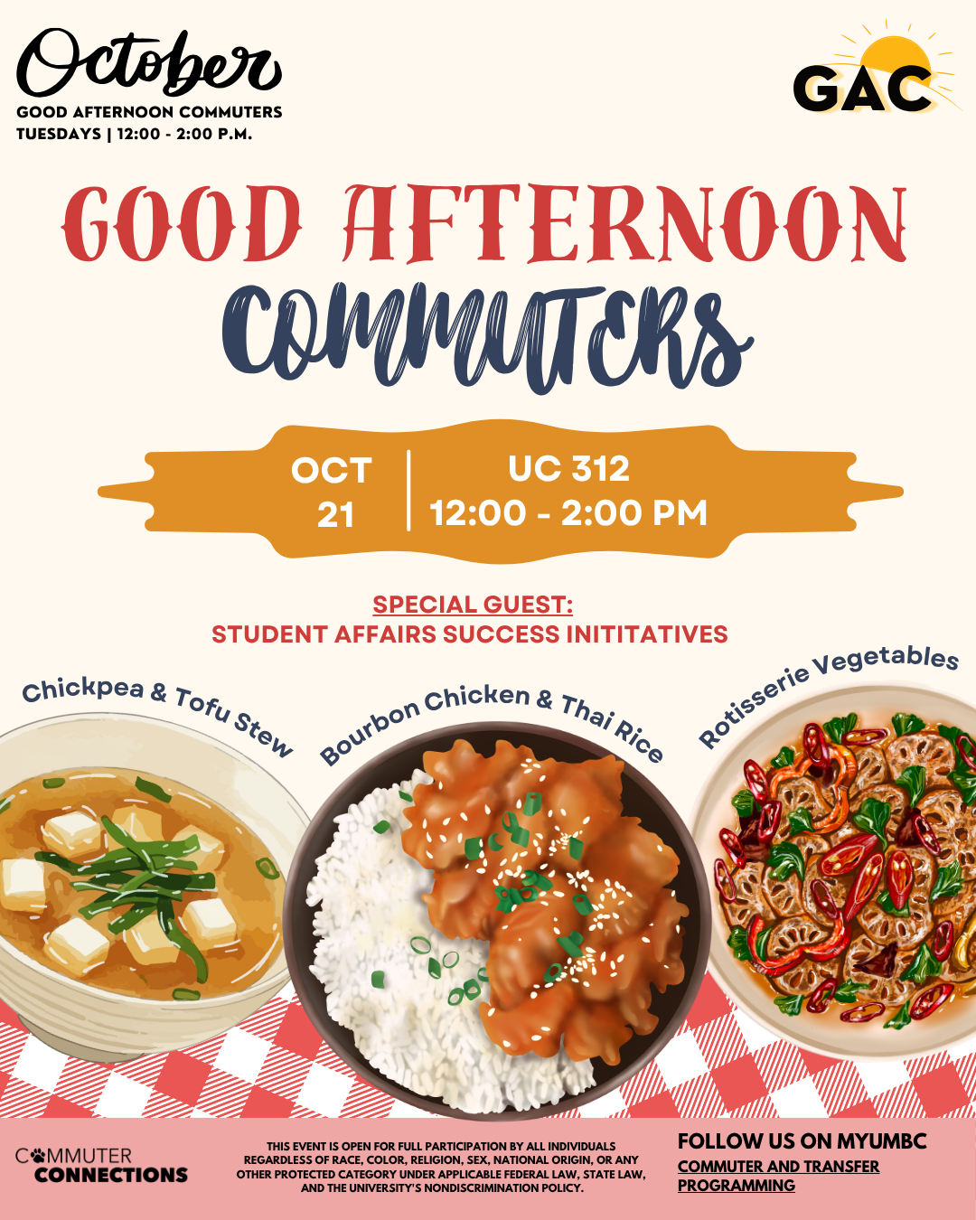 Enjoy lunch with other UMBC commuters and get connected with on-campus resources!