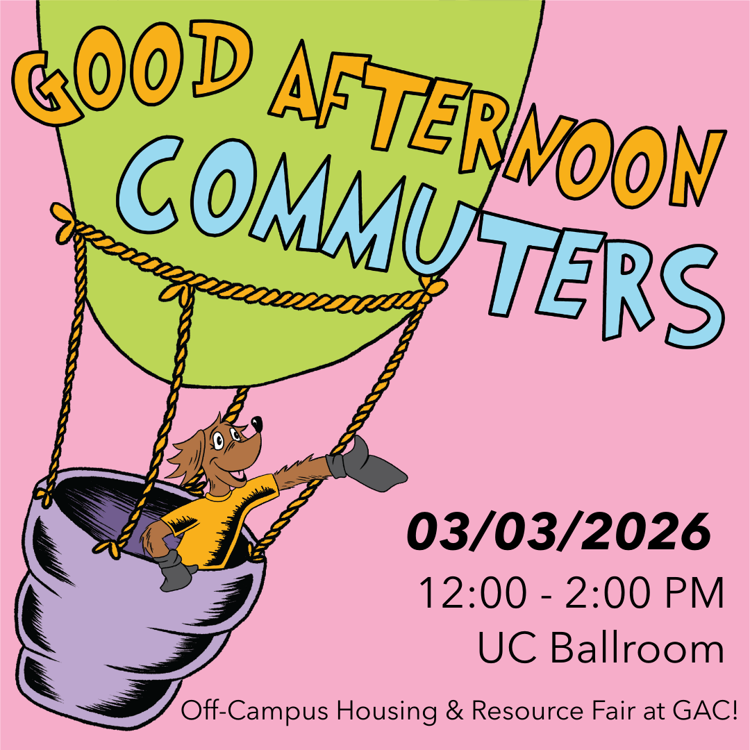 Join us at the Off-Campus Housing & Resource Fair at GAC on March 3, 2026, from 12:00 to 2:00 PM in the University Center Ballroom. where multiple off-campus housing communities will be there to meet YOU! Ask questions, explore options, compare amenities, and find the place that fits your vibe and budget.