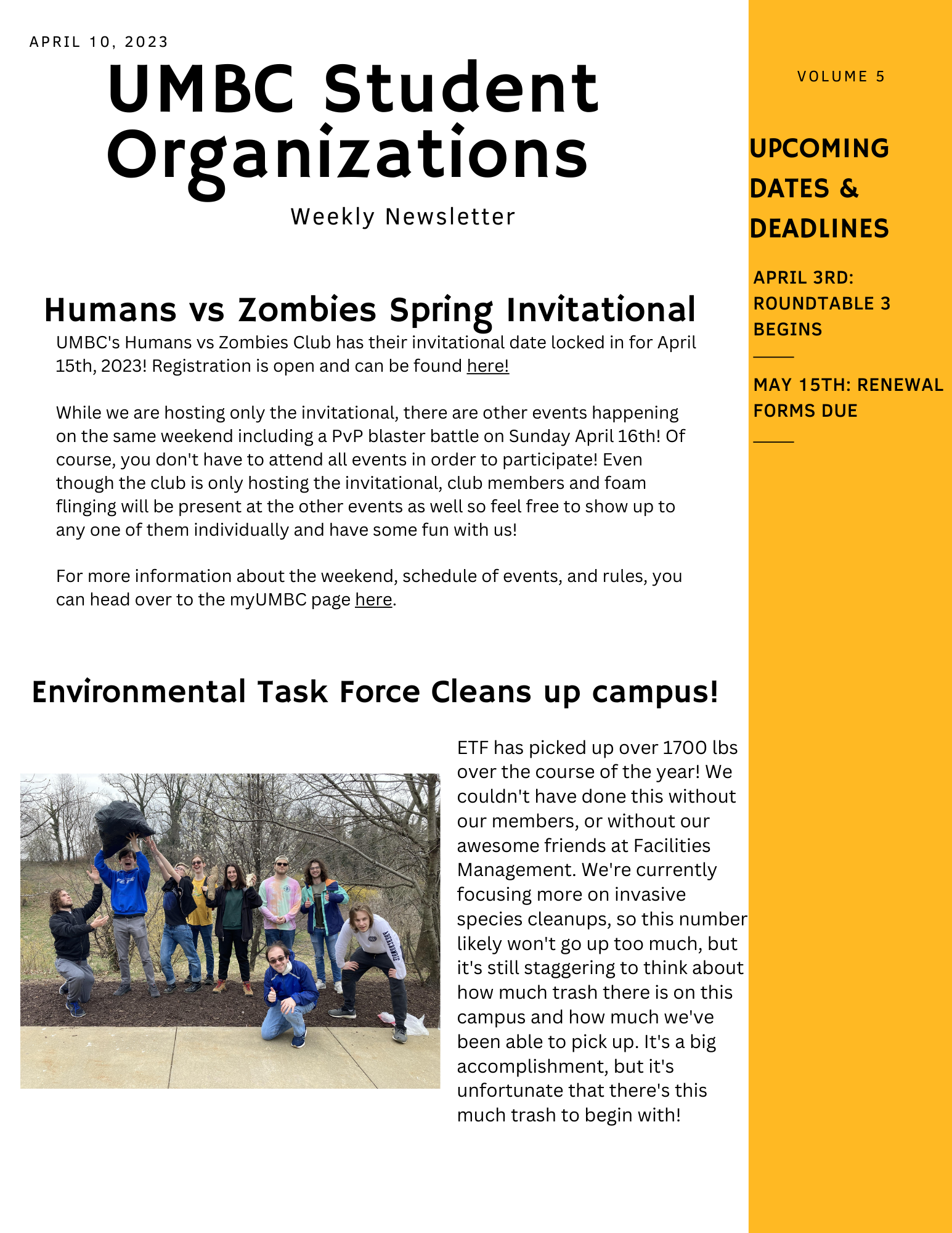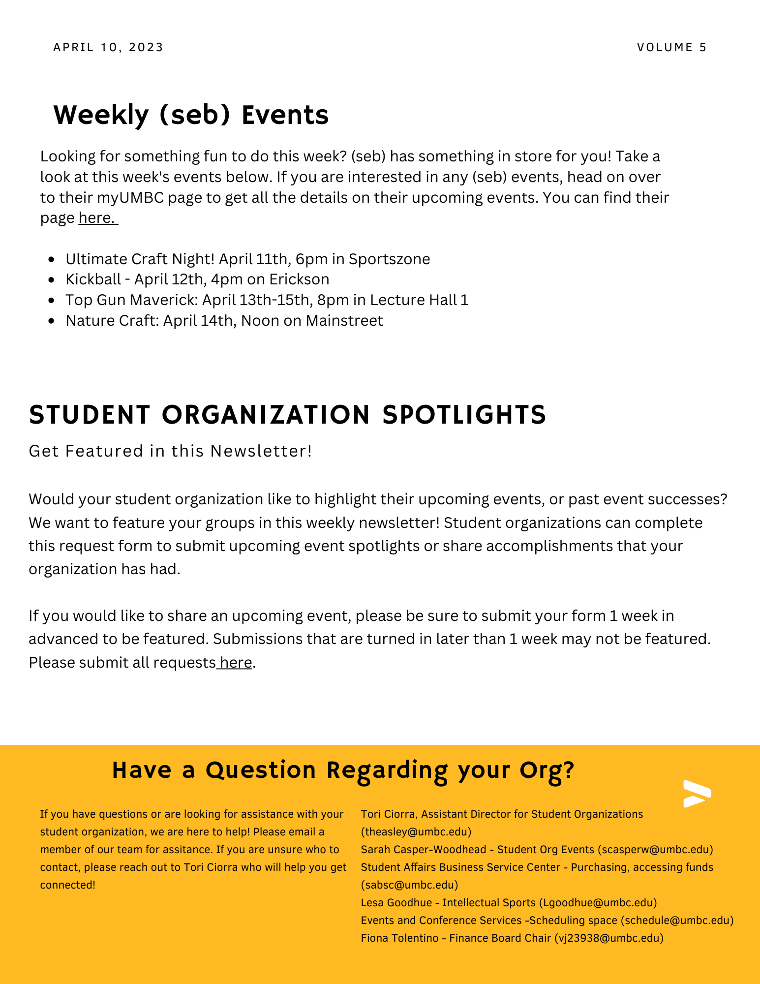 Here is this week's newsletter! We are still taking submissions for next week's newsletter until this Friday. Please submit any events, shout outs, or highlights here. Hyperlinks can be accessed by downloading the flyer.