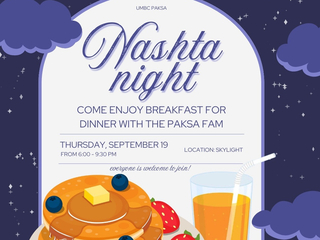 Hey Paksa Fam! Be sure to attend Nashta Night on Thursday September 19th! The night will be filled with Food, Fun, and Games :)