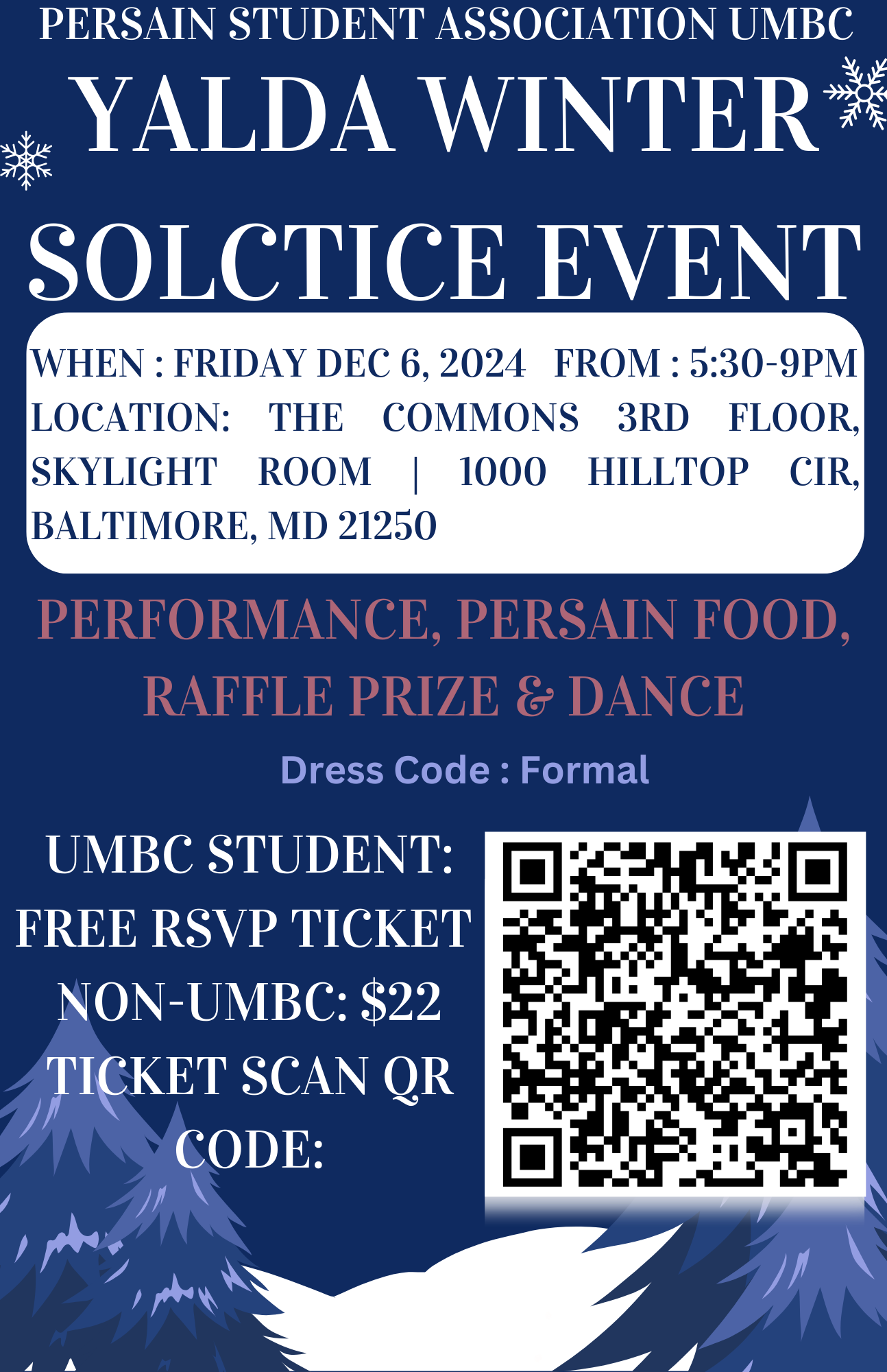 Join PSA on December 6th from 5:30PM-9:00PM for our Yalda Night Event! Our event will take place in the Skylight Room, located on the 3rd floor of the Commons. There will be various performances, raffle prizes, free Persian catered dinner, and dancing!
