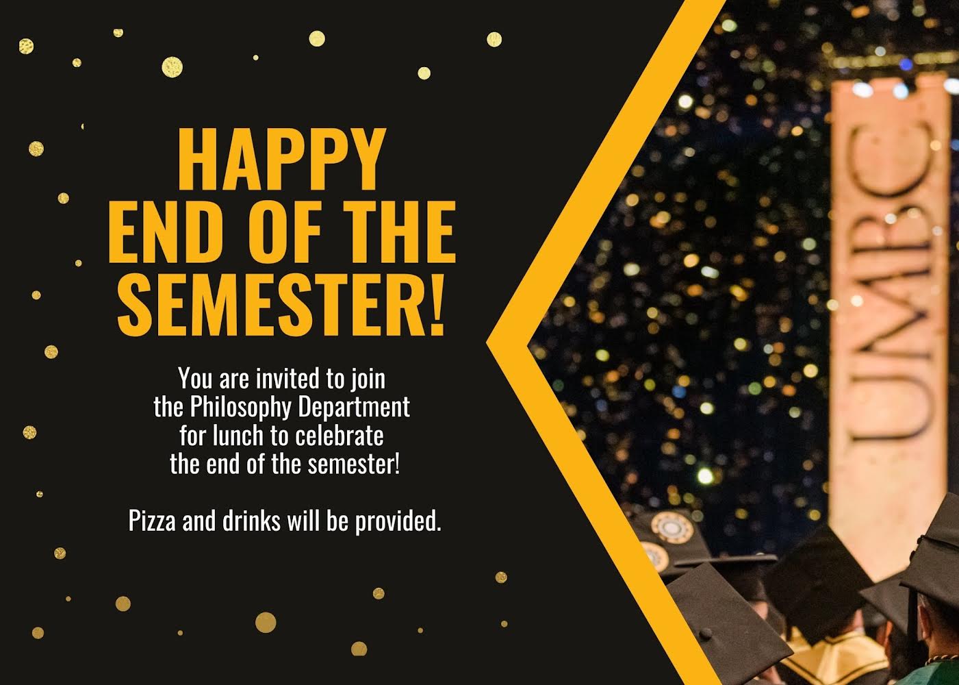 The Philosophy Department is holding a lunch celebration on December 13 from 12 -1, in PAHB 456. Come celebrate the end of the semester, congratulate those who are graduating, and also celebrate UMBCs Ethics Bowl Team, which just qualified for Nationals!