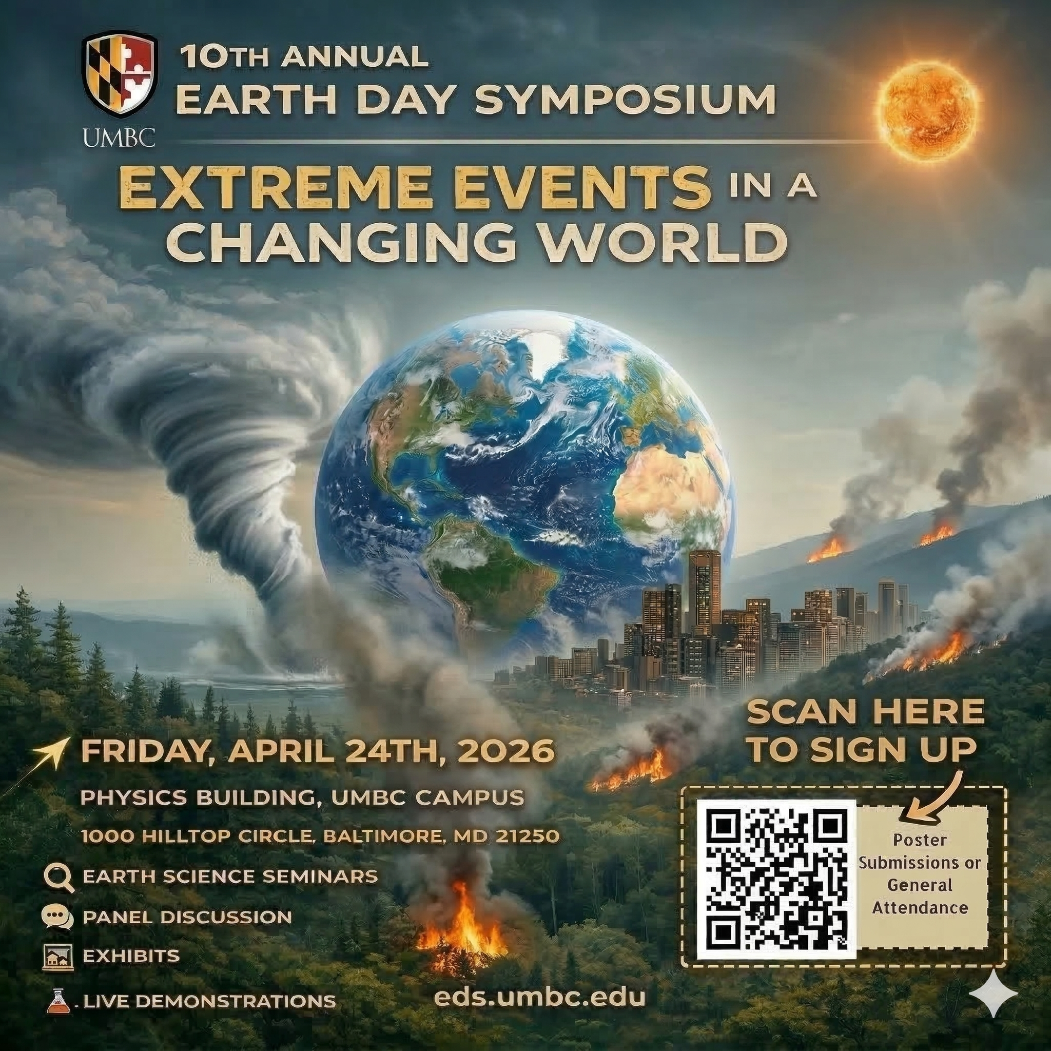 Join the UMBC Physics community for the 10th Annual Earth Day Symposium on Friday, April 24th, 2026. This year’s theme, "Extreme Events in a Changing World," dives deep into the science and reality of our evolving climate through a day of expert-led discovery and interactive learning.