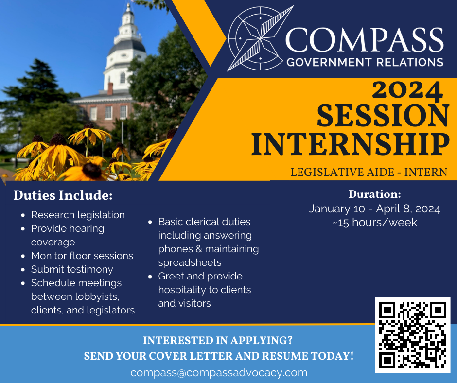 We are looking for a reliable and motivated intern with an interest in government, policy, and Maryland politics. Interest and experience in social media content creation is a plus. Excellent candidates for this position are personable, and willing to follow directions working individually or as part of a team. Candidates should excel in a fast-paced, high-pressure work environment, and possess excellent writing and time management skills.