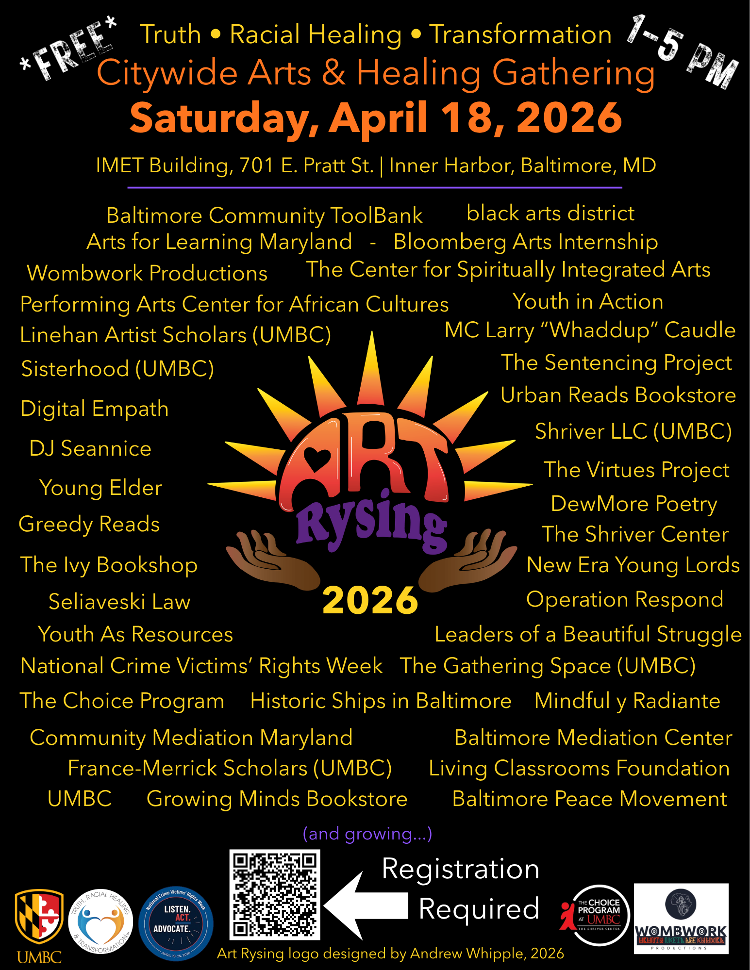 - Hosted at the Rita Rossi Colwell Center [IMET] Building on Baltimore’s Inner Harbor, Art Rysing 2026 will showcase the transformative power of the arts to bridge divides, amplify silenced voices, and foster truth-telling in pursuit of racial equity and collective healing.