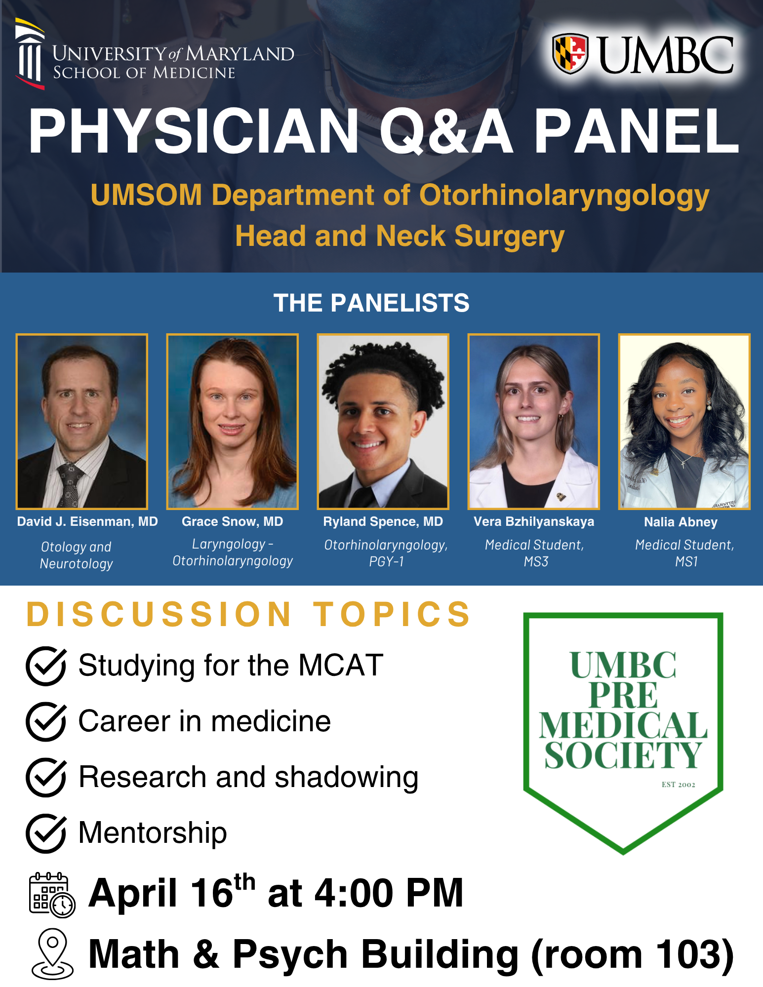 Come out to learn about life as a student, doctor, resident doctor, guidance, etc. Come prepared with lots of questions.
