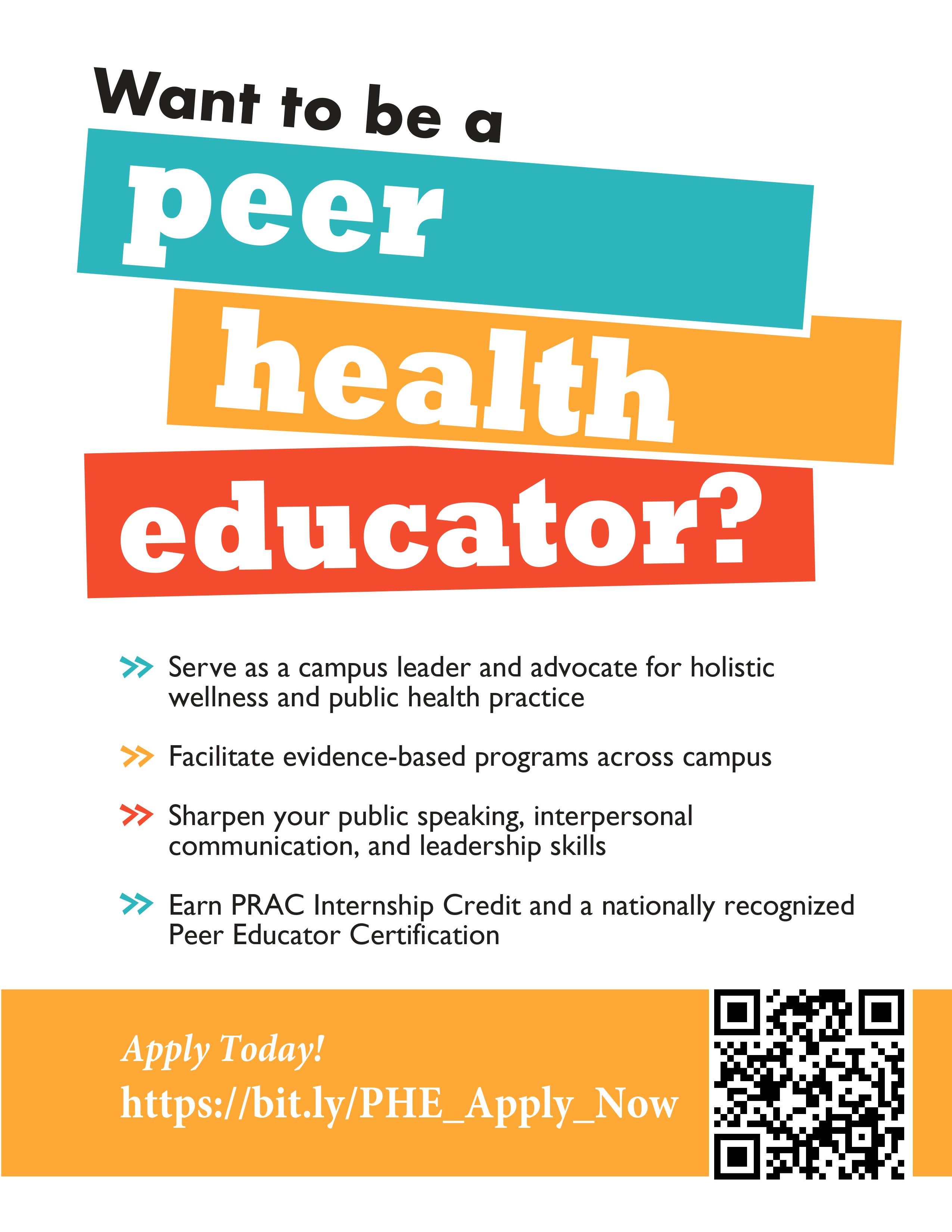 The Peer Health Education Program is an unpaid internship offered through the Career Center. Students who participate can earn PRAC Internship credit and a nationally recognized peer educator certification. This is an excellent opportunity for students to gain skills in leadership, public speaking, and interpersonal communication. Undergraduate and graduate students from any academic background attending UMBC/s main campus are welcome to apply.