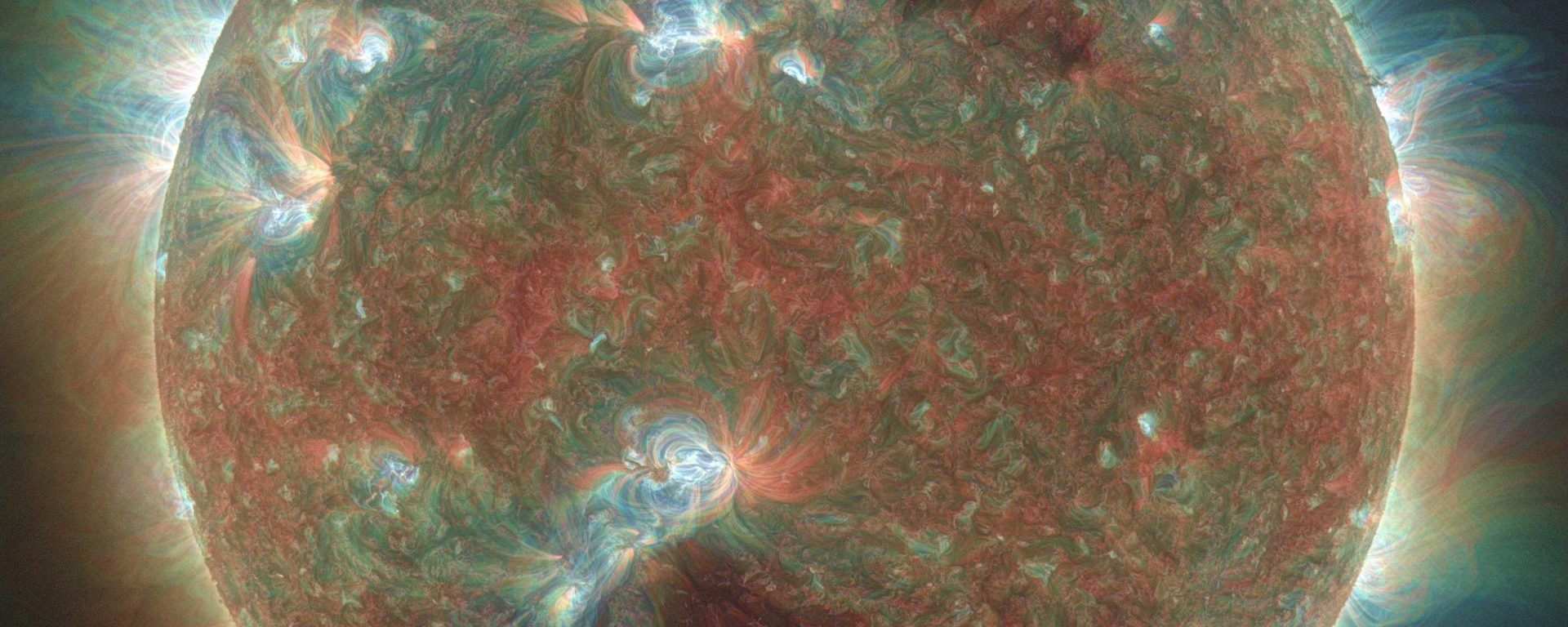 Banner image: An image of a terminator event on the Sun in 2011. The three different colors (added by researchers) represent three temperatures. Photo courtesy of NASA Solar Dynamics Observatory.