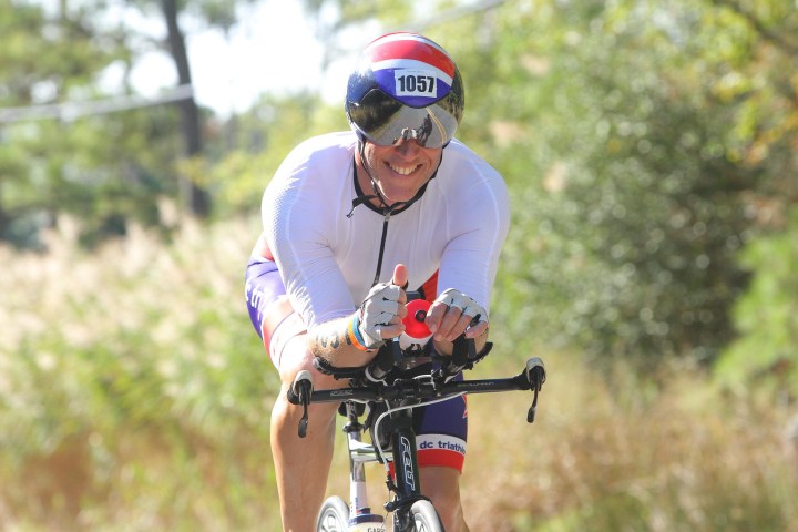 Using a GPS watch to track a 100-mile bike race inspired the technique Robert Leamon employed in his new research. Here he competes in an Ironman triathlon. Photo courtesy Robert Leamon.