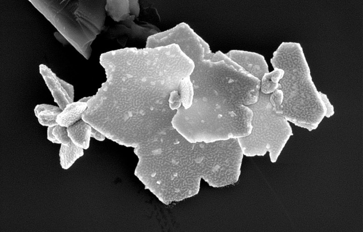 Electron microscope image of nanoplates. Courtesy of the Devadas Lab.