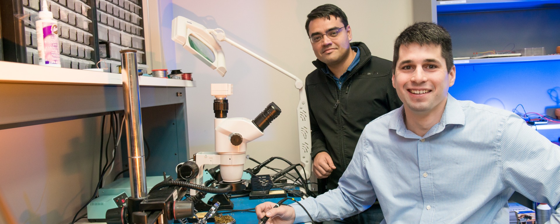 Image: Nilanjan Banerjee and Ryan Robucci in a lab. Photo by Marlayna Demond ’11 for UMBC.