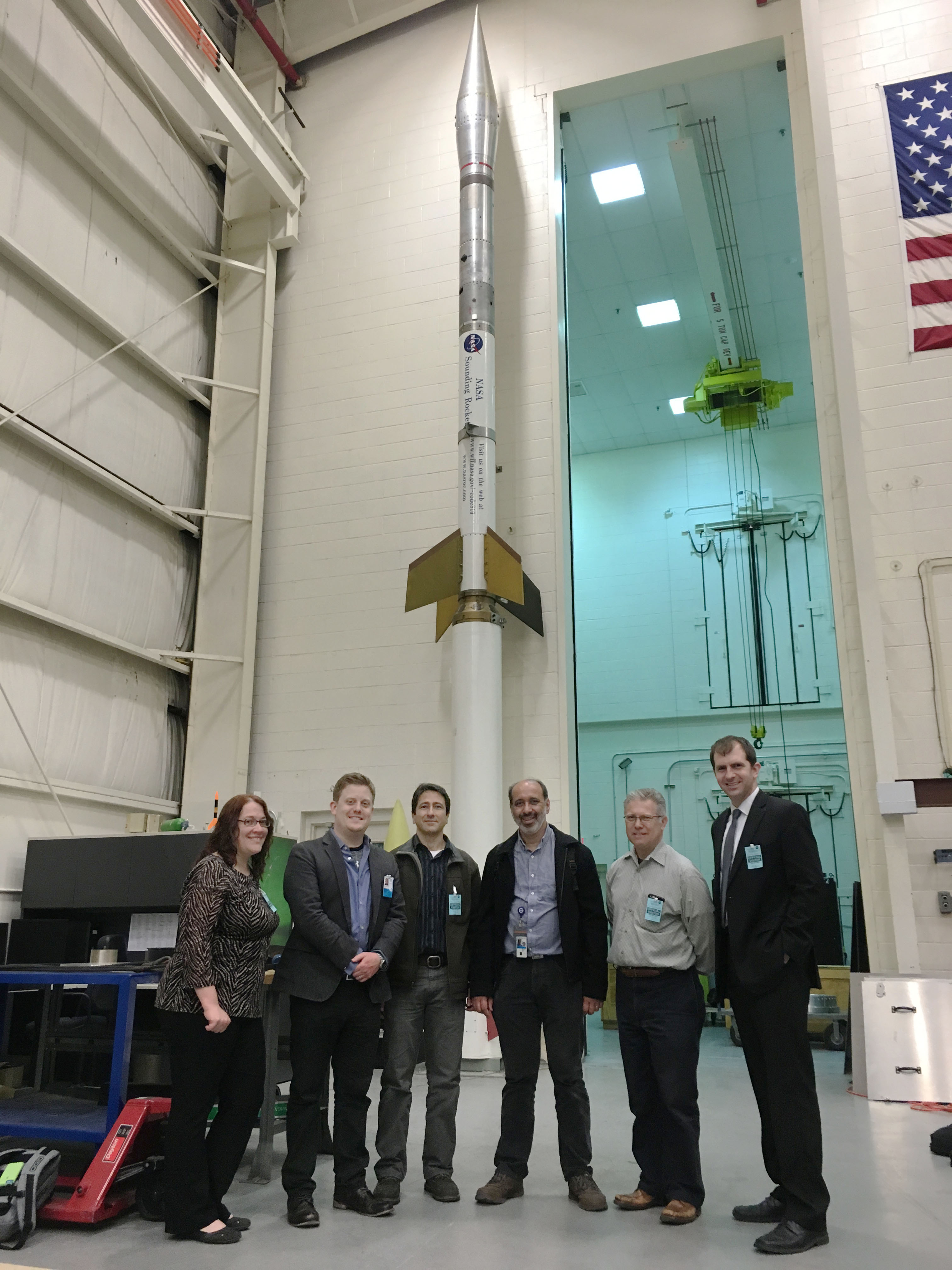 Last week, a delegation from UMBC visited the Wallops Flight Facility. The UMBC group had the opportunity to present on their respective research interests and to tour the Wallops laboratories, rocket launch facilities and air hanger. Several promising opportunities for future collaborations were discussed. The visit had included professors from UMBC's departments of mechanical engineering; computer science and electrical engineering; and physics. The group was hosted by William Wrobel, Director of the Wallops Flight Facility, who had visited UMBC last April.