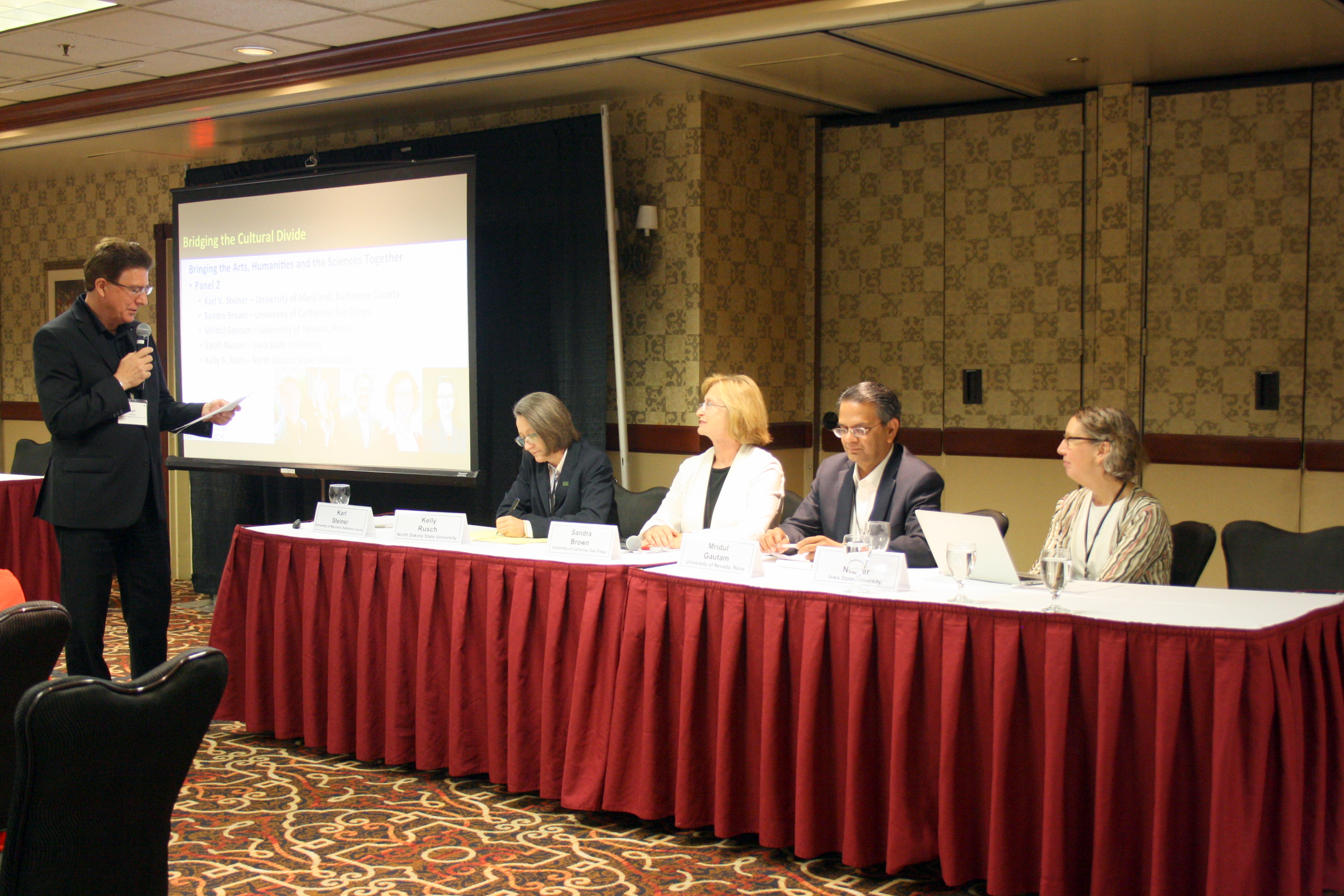 Karl Steiner moderates "Bridging the Cultural Divide: Bringing the Arts, Humanities, and Sciences Together." Left to right: Karl Steiner, Kelly Rusch, Sandra Brown, Mridul Gautam. Photo credit: Sarah Rovito.