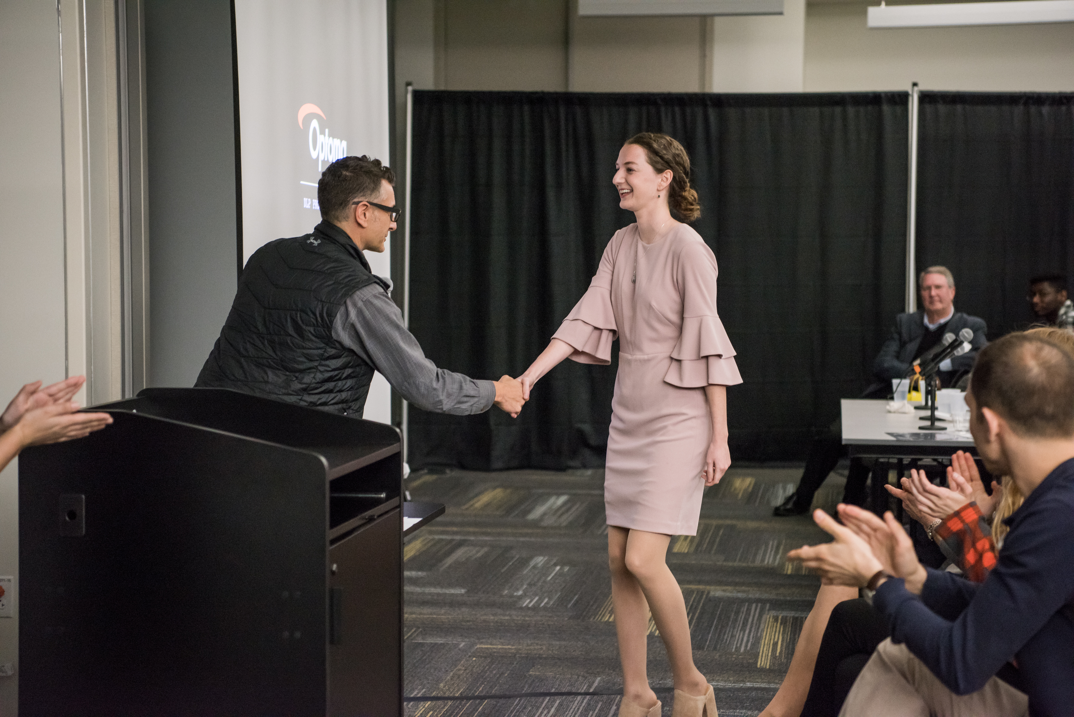 Second place was awarded to Matrix Cast, an idea presented by Flo de Sande ‘18, mechanical engineering. Matrix Cast is a plastic cast that can be altered to fit all arm shapes and sizes. de Sande explained that Matrix Cast offers a low-cost cast option for physicians working in remote or low-resource locations, such as communities served through Doctors Without Borders or military installations in conflict zones. The cast is a “pressure vessel” type design, which, while made from plastic, is very sturdy, explained de Sande during her business pitch.