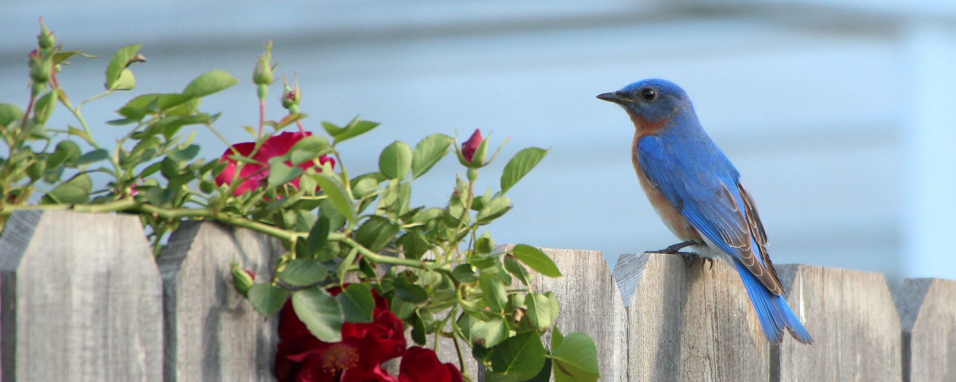Image: An Eastern Bluebird, Rose’s study organism, sits on a fence. Photo by Dolan Trout, used under CC 2.0.
