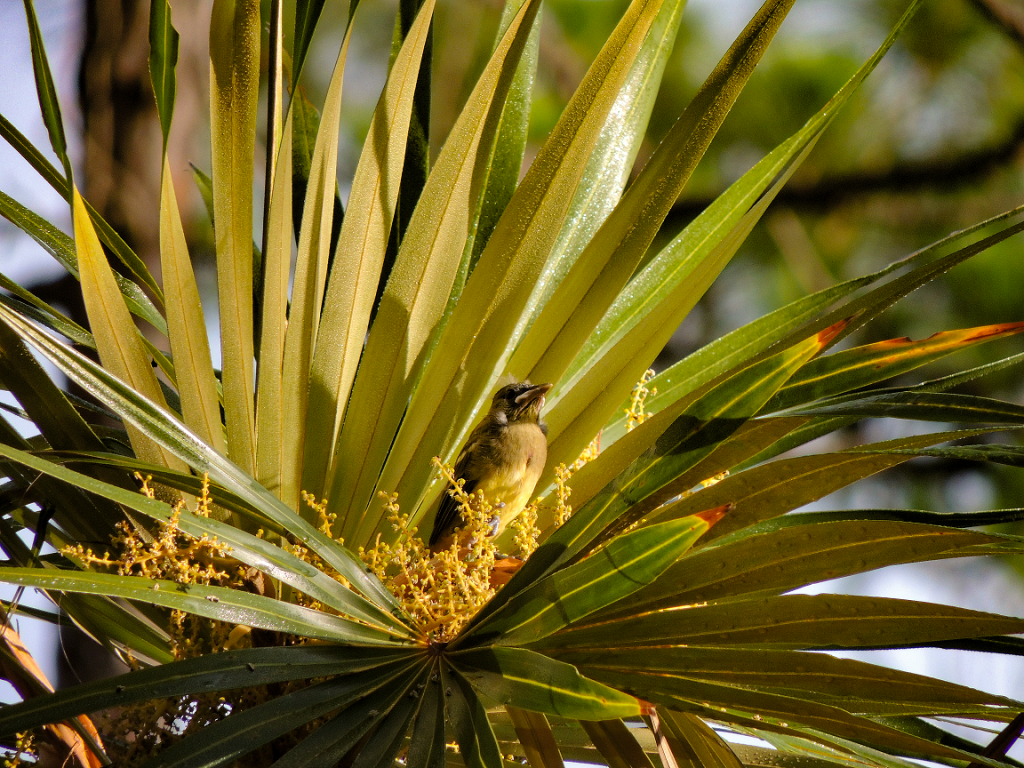 A fledgling Bahama Oriole in a thatch palm tree. Photo by Matthew Kane ’19.