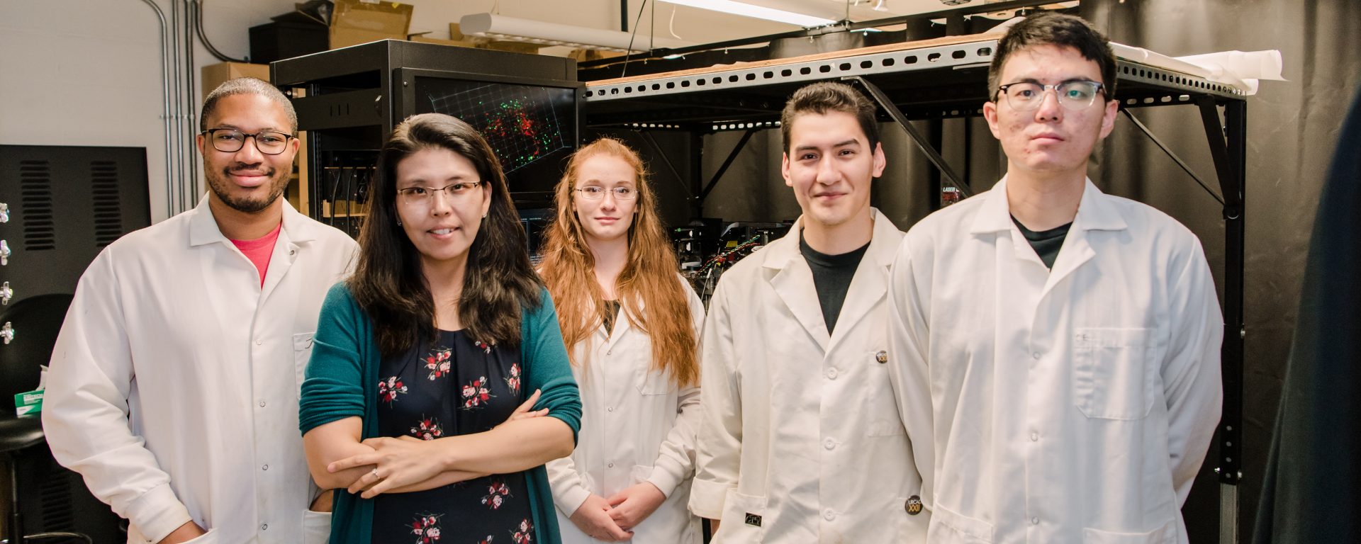 Banner image: Minjoung Kyoung and her UMBC lab group. From left to right: Keynon Bell, Minjoung Kyoung, Erin Kennedy, Manuel Huerta-Alvarado, and Tao Zhang. Photo by Marlayna Demond ’11 for UMBC.