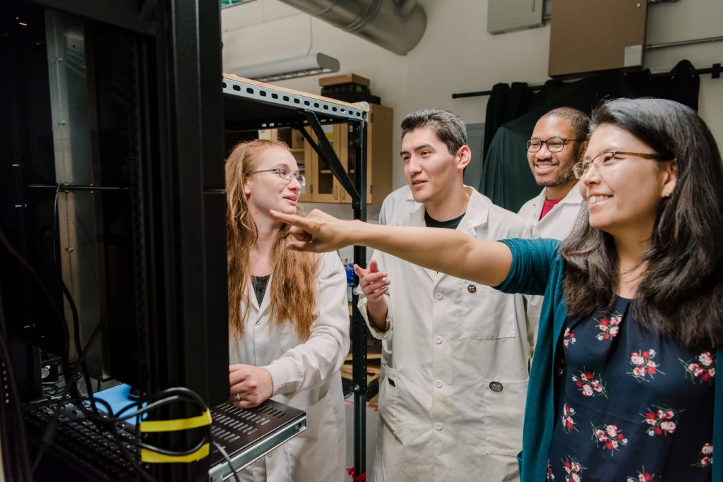 Minjoung Kyoung explains a result to her students. Photo by Marlayna Demond ’11 for UMBC.