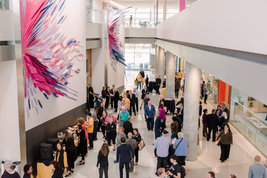 Whether it’s changing the world through research or training the next generation, “When you have a great goal, it’s important to build a large and diverse community,” to work toward that goal, Hrabowski said. “This building is really teaching us the power of convergence.”