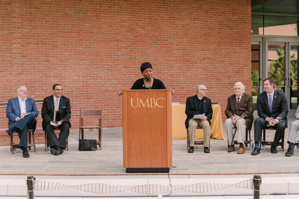 Maryland Speaker of the House Adrienne Jones ’76, psychology, also expressed her appreciation for UMBC. “UMBC is really setting the bar high in terms of science, and I commend you for what you continue to do,” she shared. “I’m proud to be an alumna.”
