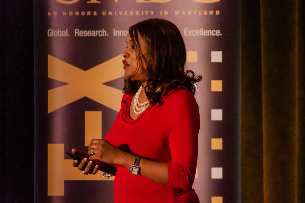 Crystal Watkins-Johannson ’95 speaks at GRIT-X 2019. Photo by Arionna Gonsalves.