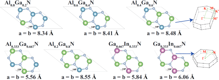 Scientists have already made some of these 2D materials in small quantities. Instead of looking at mixtures of one of the group III elements with nitrogen, however, Wines and Ataca modeled alloys—mixtures including nitrogen and two different group III elements. For example, they predicted the properties of materials made of mostly aluminum, but with some gallium added, or mostly gallium, but with some indium added.