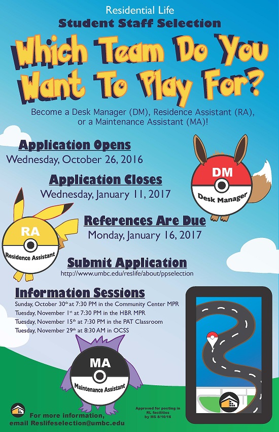Are you thinking about submitting an application but, you have questions? Come out to our next Information Session on Tuesday, November 29, 2016 at 8:30am in OCSS. To submit an application click http://reslife.umbc.edu/student-employment-opportunities/.