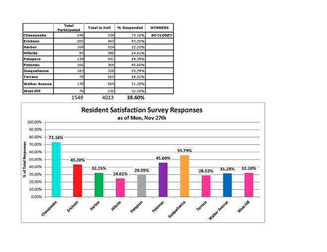 Residential Life wants to hear from you. If you haven't completed your Resident Satisfaction Survey be sure to check your email and fill it out for a chance to win individual and community prizes. Chesapeake you're so close!
