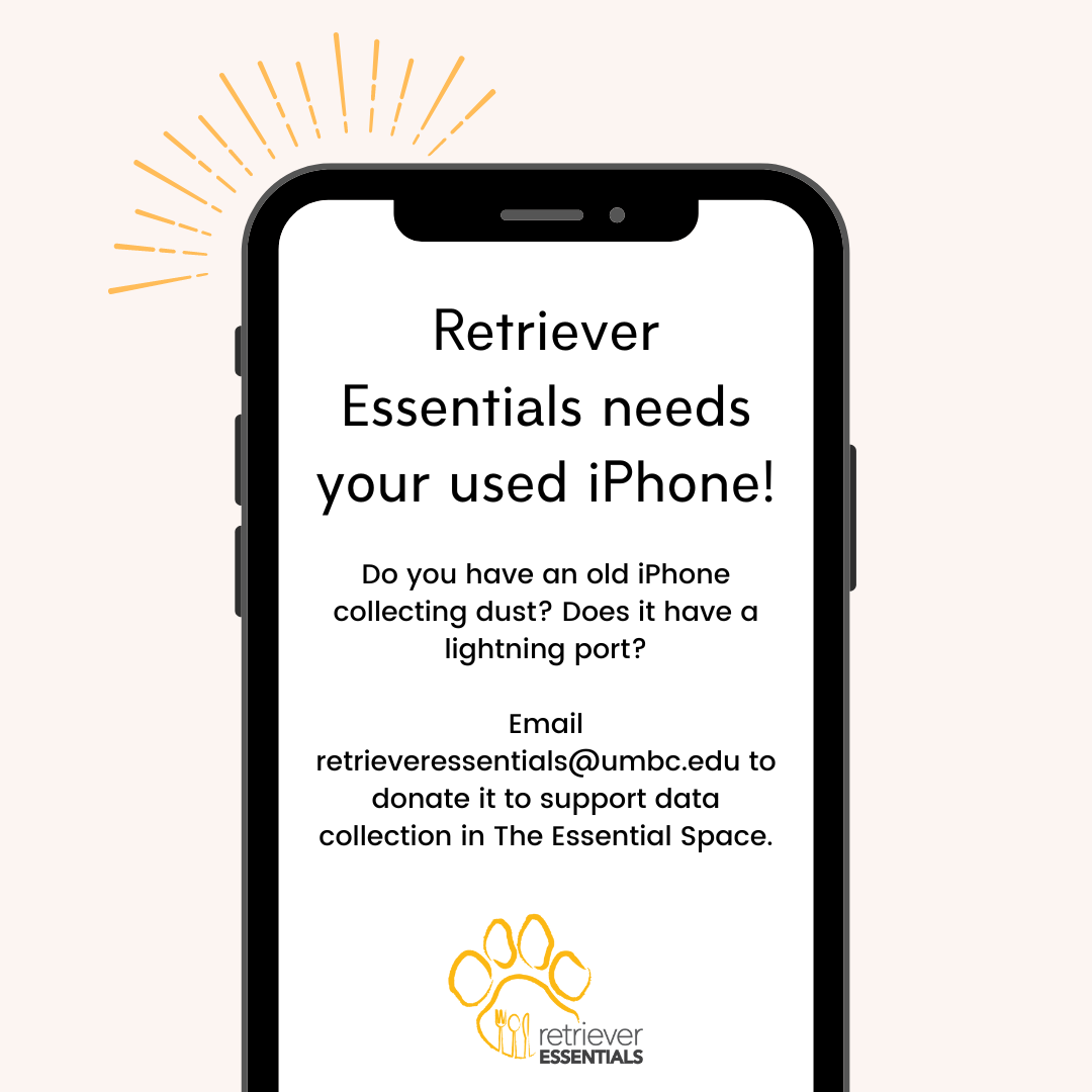 We need one iPhone with a lightning port. If you would like to donate this item, please send an email to retrieveressentials@umbc.edu with the model.