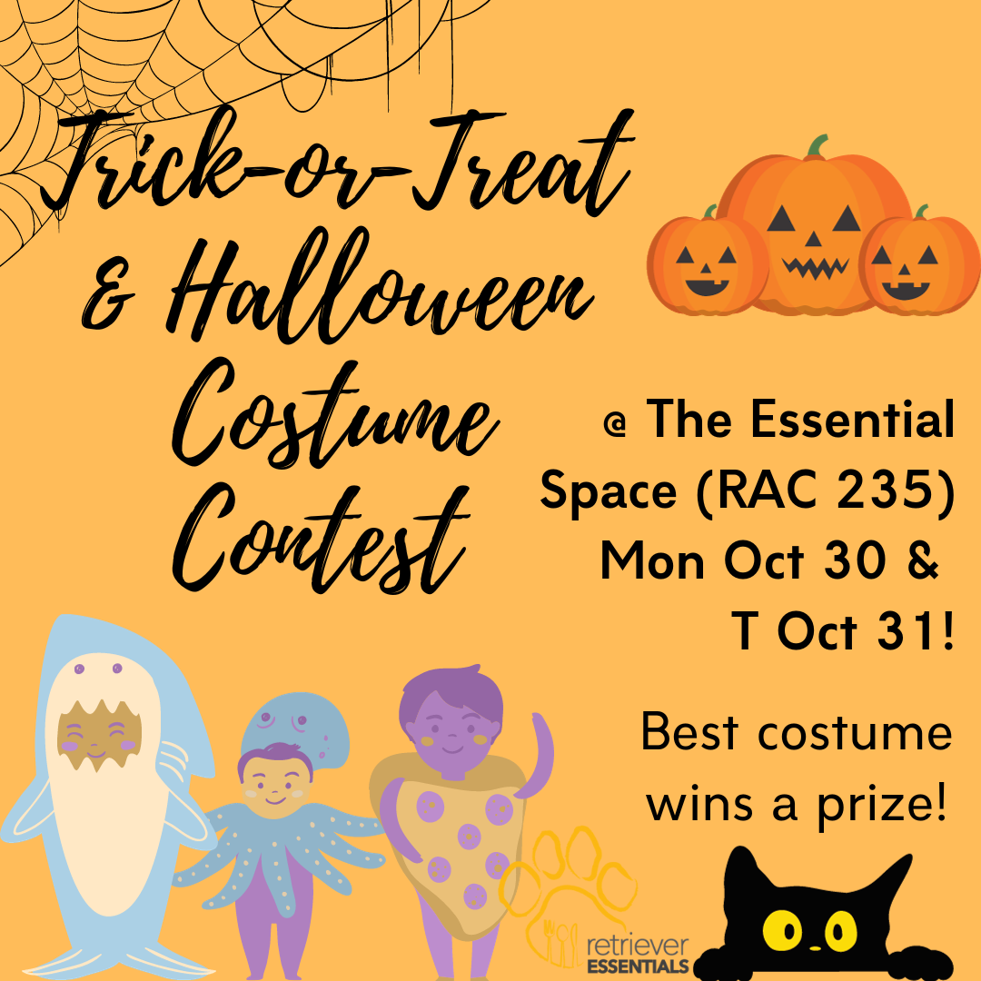 Happy Halloweeeen: Wear your best costume & bring your best friends to The Essential Space, UMBC's Free Grocery Store, next week for trick-or-treating!