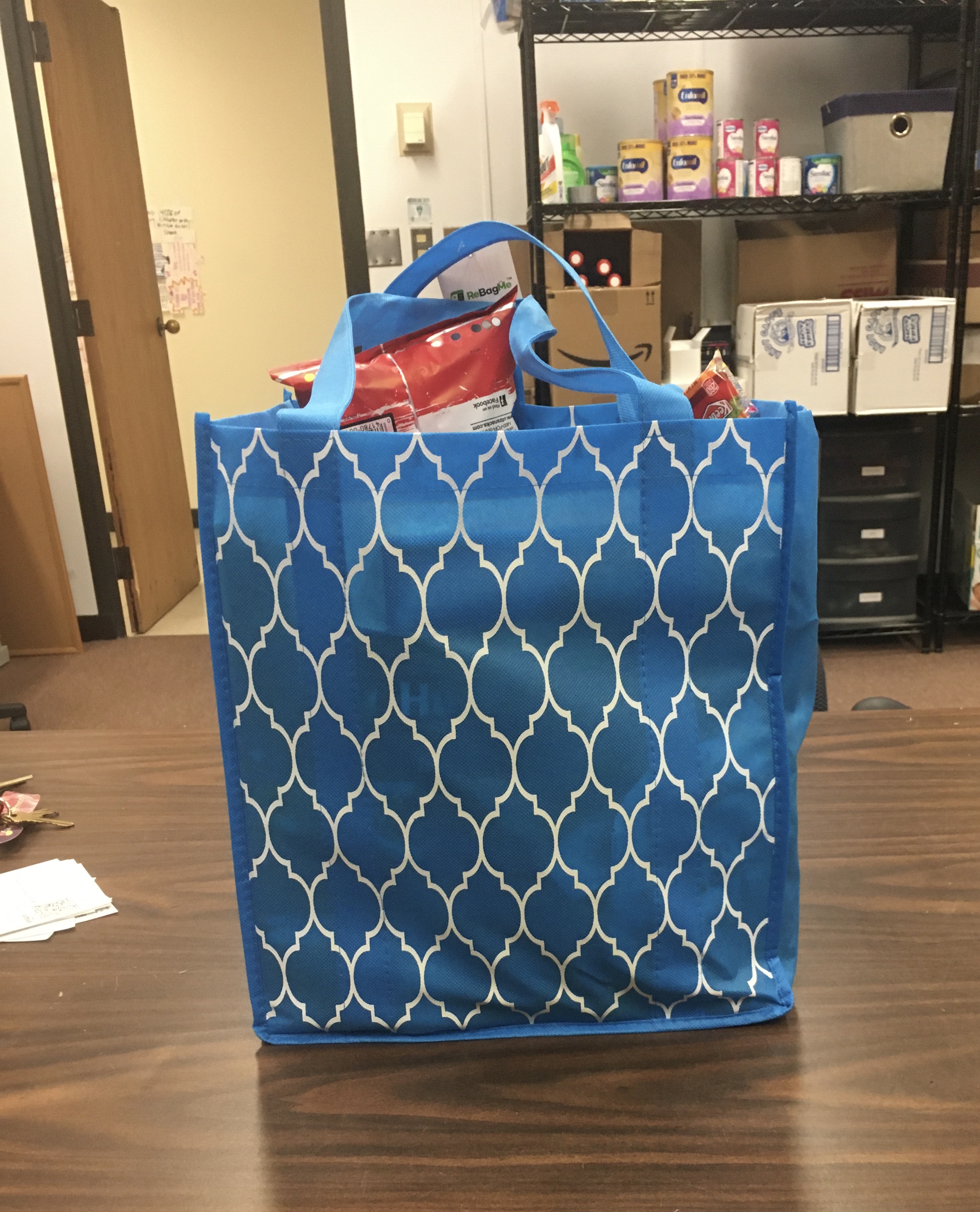 Dear Community Partners, Please consider donating reusable tote bags to help Retriever Essentials in its mission to serve the food insecure members of the UMBC community. We are looking for medium- and large-sized durable bags. We use the tote bags to pack a week’s supply of essential grocery items (as shown in the picture below).