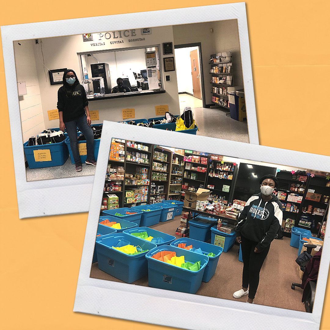 To our volunteers Fariha, Nyla, Sabrina, and Rebecca, thank you so much for helping get our Thanksgiving bags all together and ready to be given out.