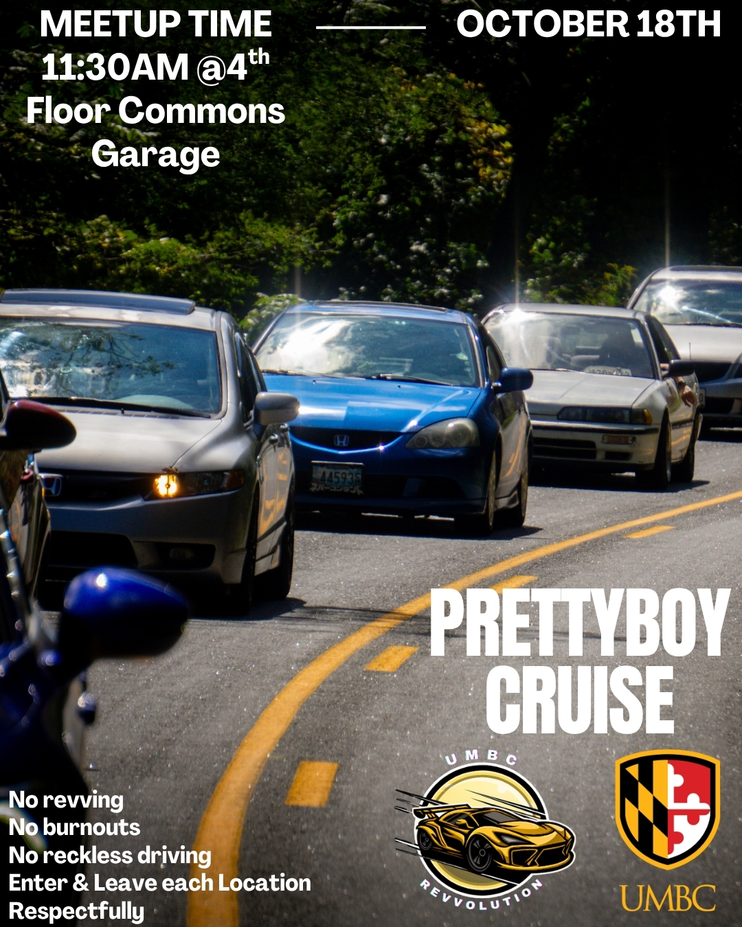 Join us Saturday October 18th for a cruise! We'll be starting at UMBC and making our way to Prettyboy Reservoir! We hope to see y'all there!