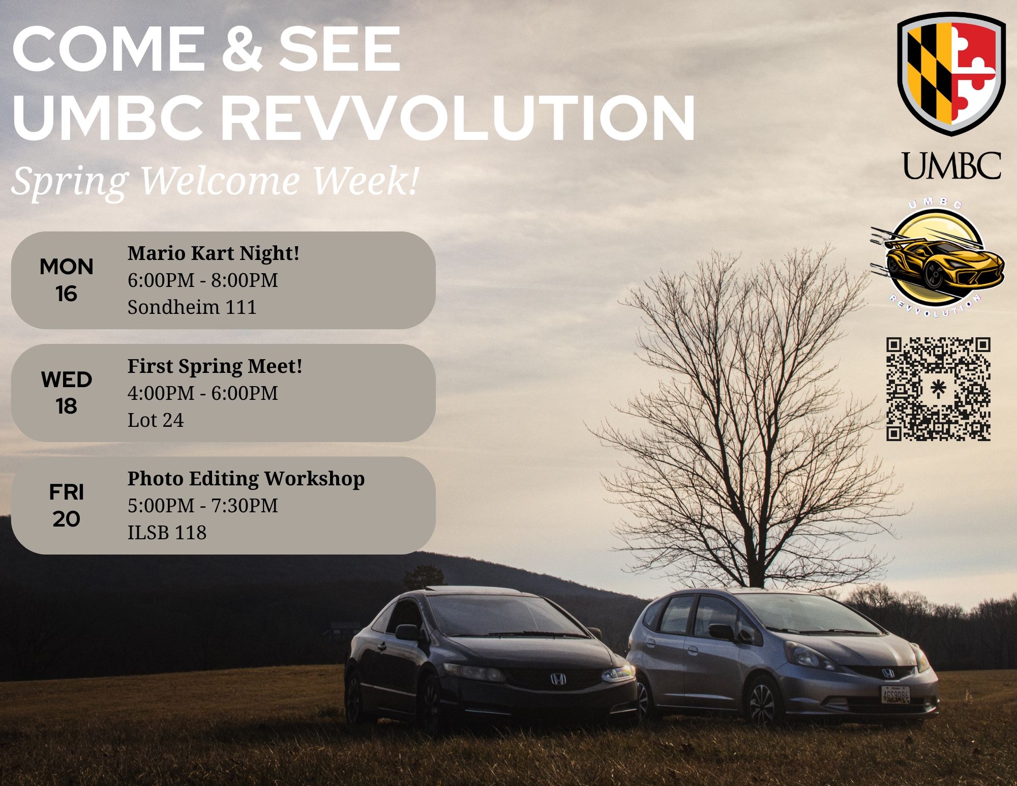 We hope to see y'all at Welcome Week! For updates and more information check out our Instagram (@umbc.revvolution)