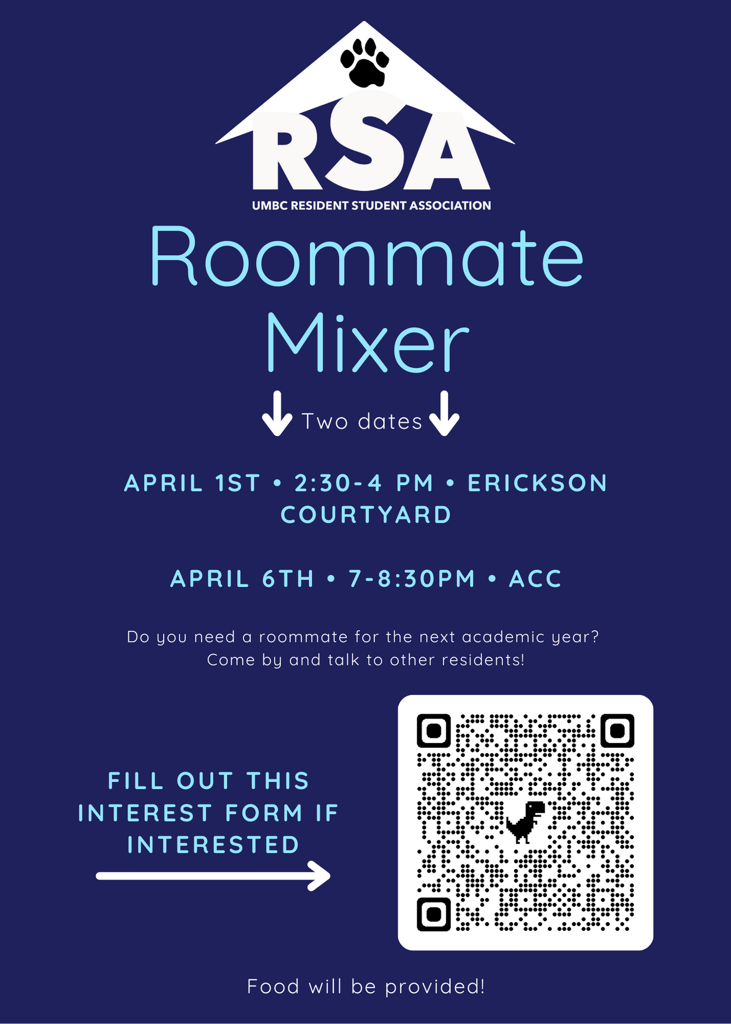 Come by to the RSA Roommate Mixer to get to know other residents and find a roommate!