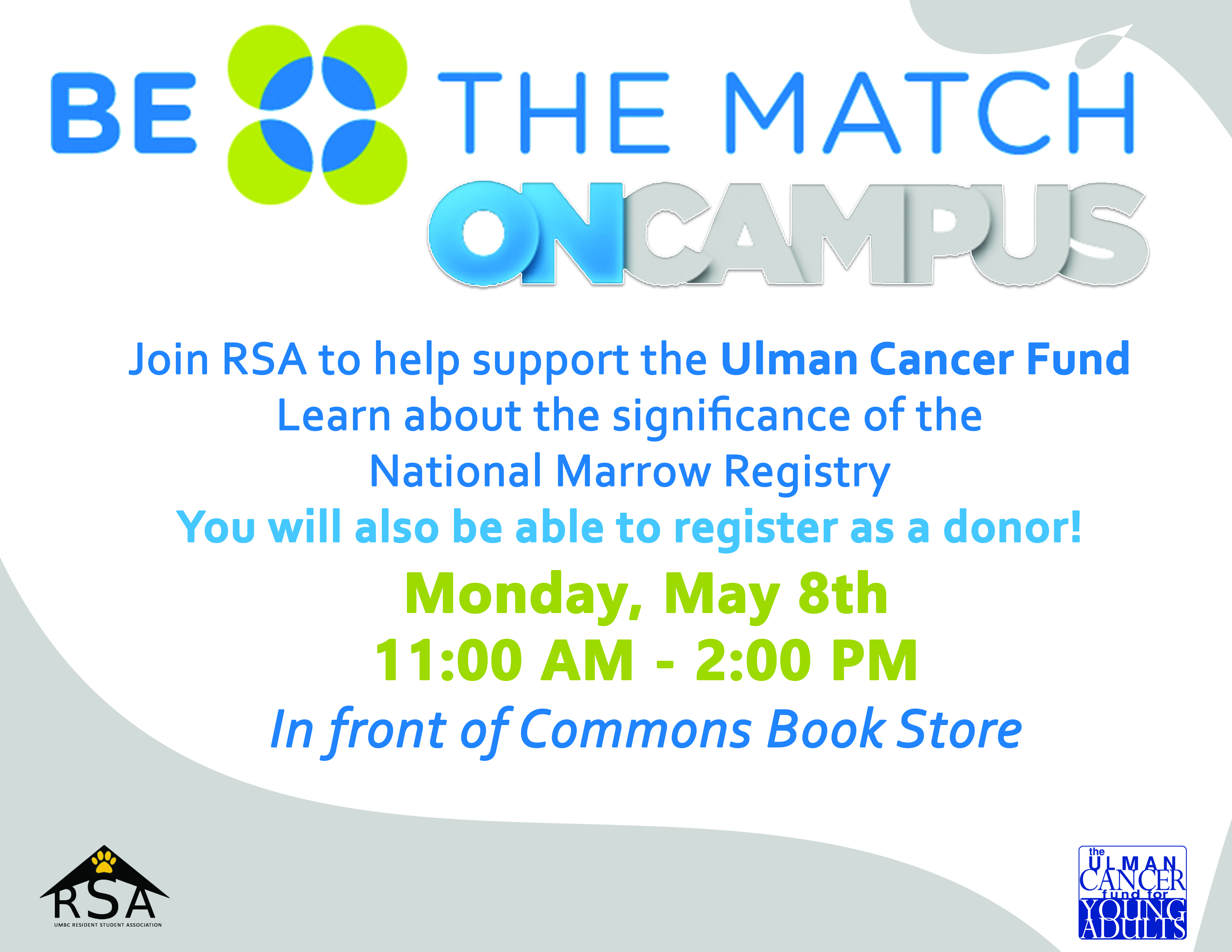 Come out to Commons Mainstreet to find out if you could be a match for bone marrow donations! The process is super simple, and not overly intrusive. Please come out and potentially help someone!