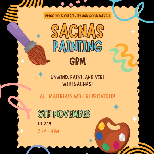 Tired from midterms? Come relax and join us for a chill GBM (paint and sip!) (all materials will be provided) this Thursday, 3PM-4PM in room ITE 239.