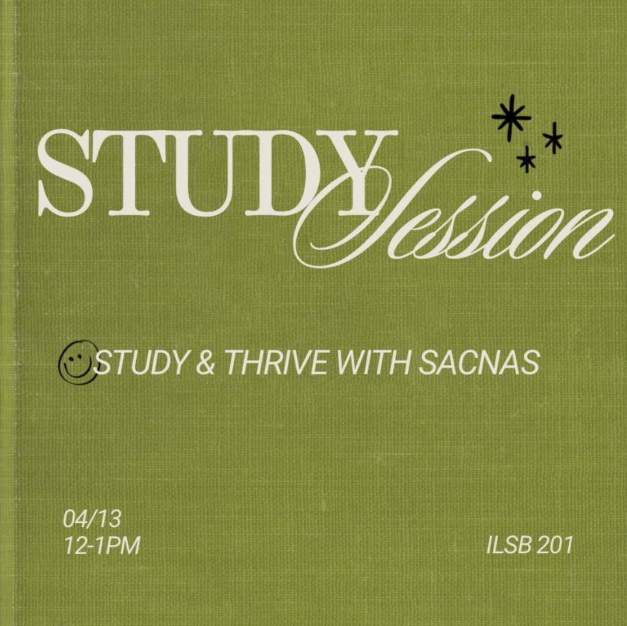 Come join us today (04/13/26) from 12pm-1pm in ILSB 201 for a study session. If you want to lock in for exams, assignments or perhaps yap a little… we are here for all that! Bring your laptop and friends!