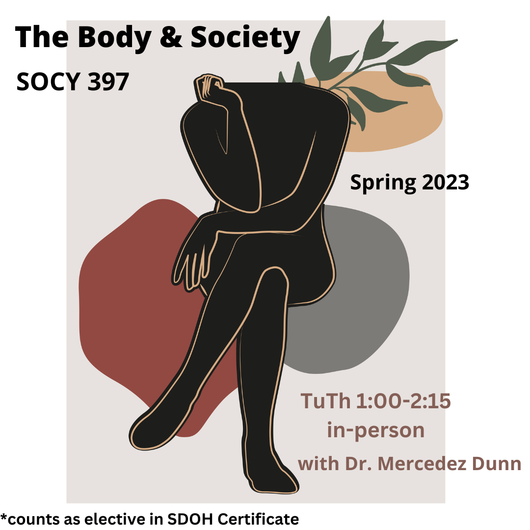 What could a focus on bodies provide about everyday issues? Beyond flesh and bone, bodies are deeply social and symbolic. Bodies are used to justify stigmatization, oppression, and exclusion and differentiate "us" versus "them". They are also sites of resistance, pleasure, acceptance, and joy. This course invites you to move beyond conventional understandings of how bodies fit (and don't fit) within social worlds. Together, we will draw on sociological approaches to examine the ways bodies are represented, racialized, medicalized or considered sick, gendered, exploited, and reclaimed.
