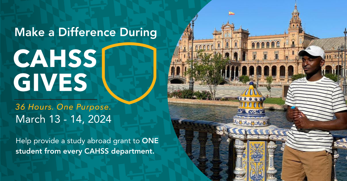 Join us for 36 hours of giving in support of our UMBC College of Arts, Humanities and Social Sciences students. The College is pledging to provide a study abroad grant to at least ONE student from every CAHSS department/program. Our goal is to ease the financial burden of this experiential activity, but we need your help. Your gift can be a great way to amplify your impact, support any area of CAHSS that is meaningful to you, provide additional funding to enhance the CAHSS learning experience, and create a sense of community to help sustain the College of Arts, Humanities, and Social Sciences well into the future. Visit CAHSS Gives to learn more (https://give.umbc.edu/cahss-gives).