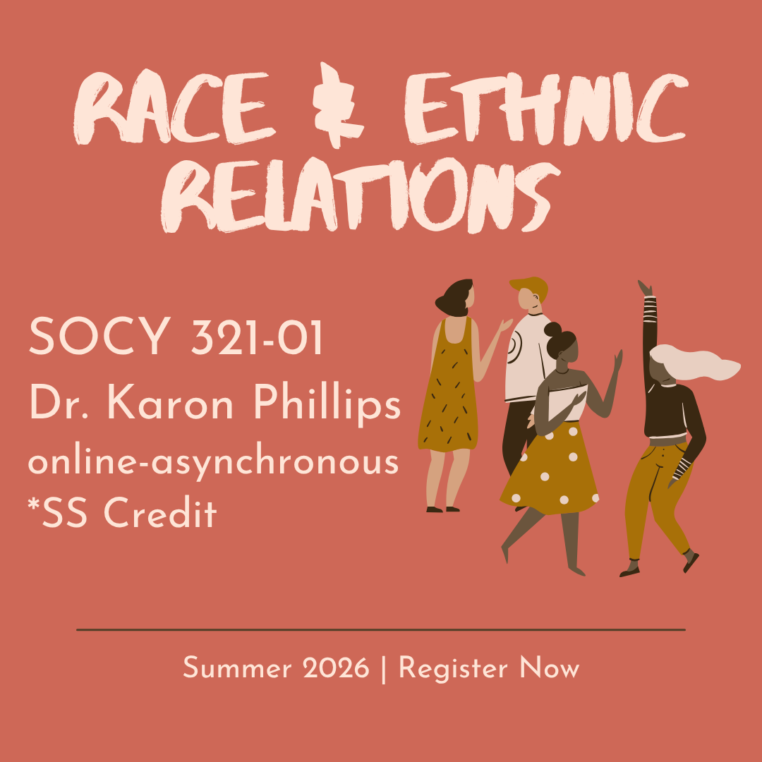 Course description: Sociological analysis of the types of minority-majority group relations and the effects of these relationships on society and the groups and the individuals involved.