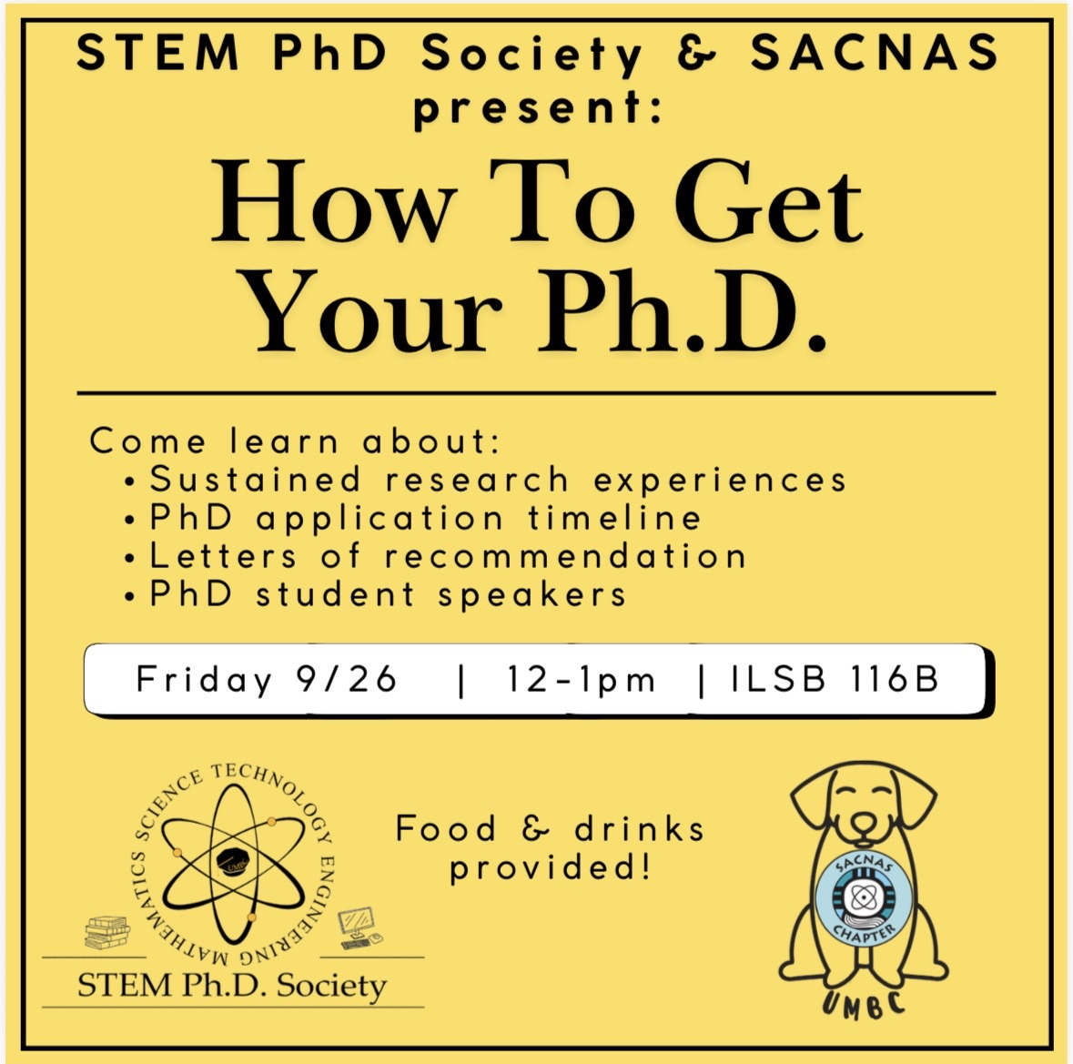 Want tips on becoming a strong PhD applicant? Join us tomorrow in collaboration with SACNAS to learn more about research experiences, application timelines, letters of recommendation and more! Food and drinks will be provided.