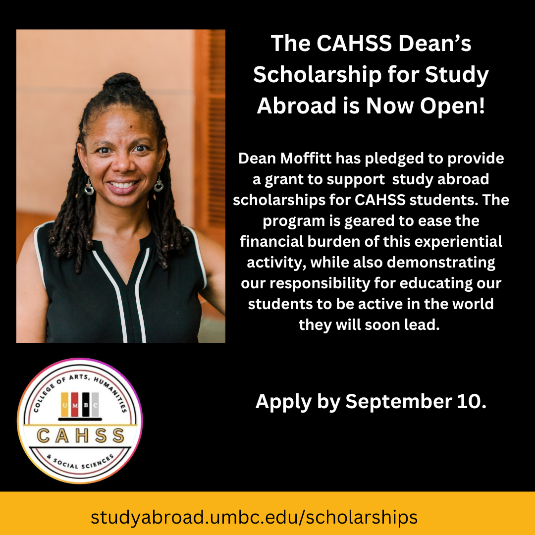 The scholarship application is fairly short (see questions below), and preference is given to students with demonstrated financial need and students applying to UMBC faculty-led or exchange programs.