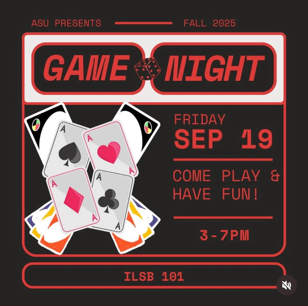 It's time for one of our favorite events: Game Night! Join us in ILSB 101 from 3-7pm. We will have plenty of board games, card games, and a Playstation ready to go for a fun evening.