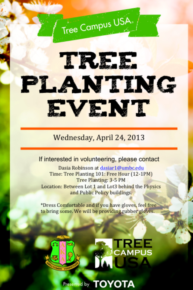 The AKA Sorority, Professional Staff Senate and community partner Parks & People Foundation have joined with the Arbor Day Foundation and UMBC Ecofest, a weeklong campus wide celebration of Earth Day, to plant trees here on campus.