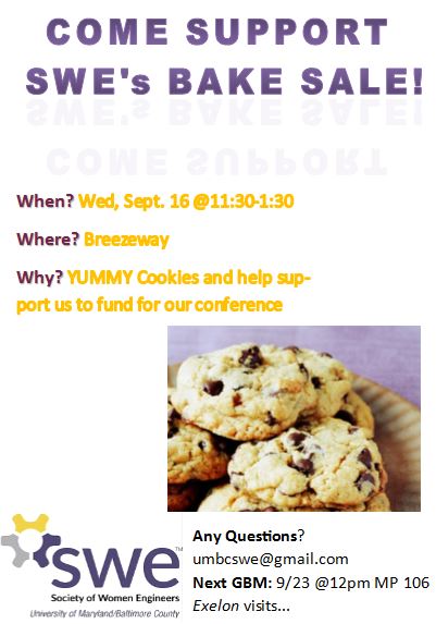 Come out and support SWE's cookies bake sale to help us fund for our members to got to SWE's National Conference on Oct. 22-24 in Nashville, TN!