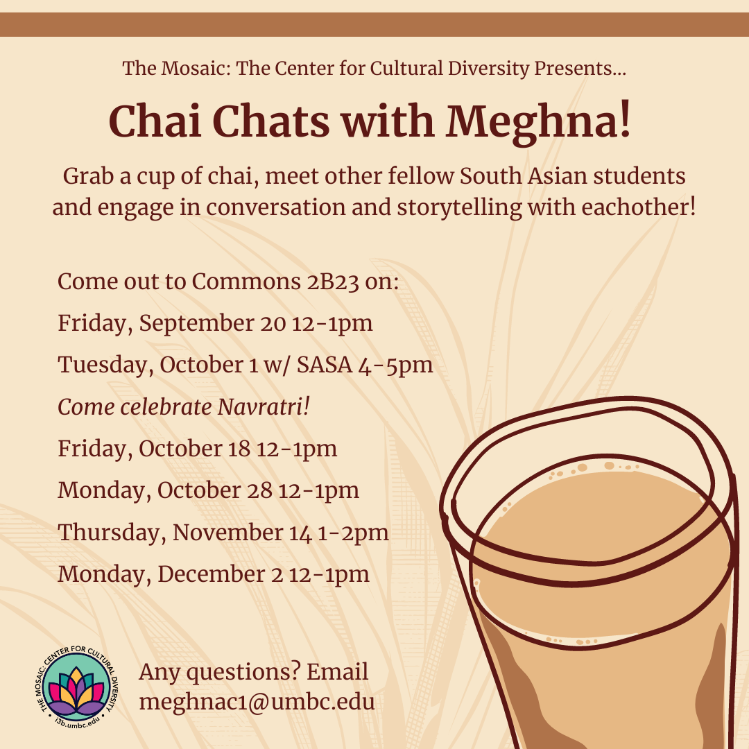 Are you a South Asian student looking for a place to connect, share stories, and build new friendships? Look no further! Join Meghna and your fellow students at Chai Chats, a welcoming space where you can enjoy a free cup of chai while engaging in meaningful conversations.