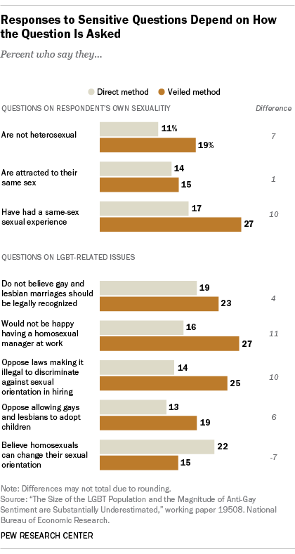 “We find substantial under-reporting of LGBT [lesbian, gay, bisexual and transgender] identity and behaviors as well as underreporting of anti-gay sentiment …even under anonymous and very private conditions,” the researchers wrote in a working paper just published by the National Bureau of Economic Research.
